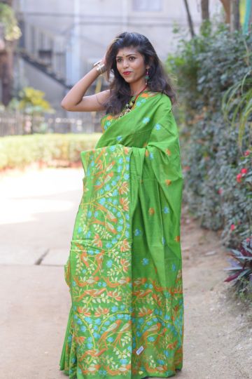 Pure Silk Kantha Stich Saree
