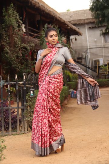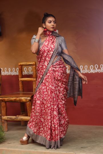 Ghicha Silk Block Print Saree